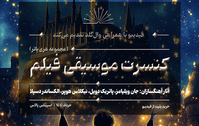 کنسرت بزرگ هری پاتر، شنبه، ۱۰ خرداد ۱۴۰۴ در دو سانس ۱۹:۴۵ و ۲۲:۳۰ در اسپیناس پالاس تهران و به همت فیدیبو و وال‌گلد‌ برگزار خواهد شد.